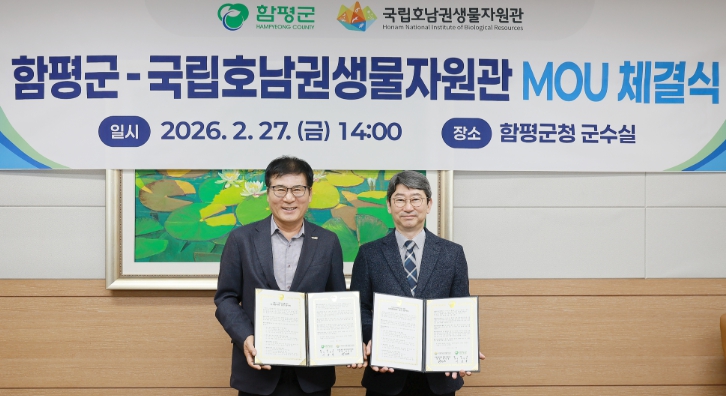 함평군은 “지난달 27일 국립호남권생물자원관과 업무협약(MOU)을 체결하고, 전시·교육·체험 콘텐츠 공동 활용과 생물자원 교류 등 협력 사업을 본격적으로 추진한다”고 3일 밝혔다.