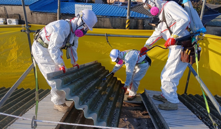 | 슬레이트 철거 공사가 진행중인 모습. |