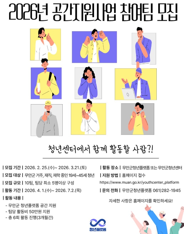 | 무안군청년플랫폼,‘2026년 공간지원 사업’ 참여팀 모집 |