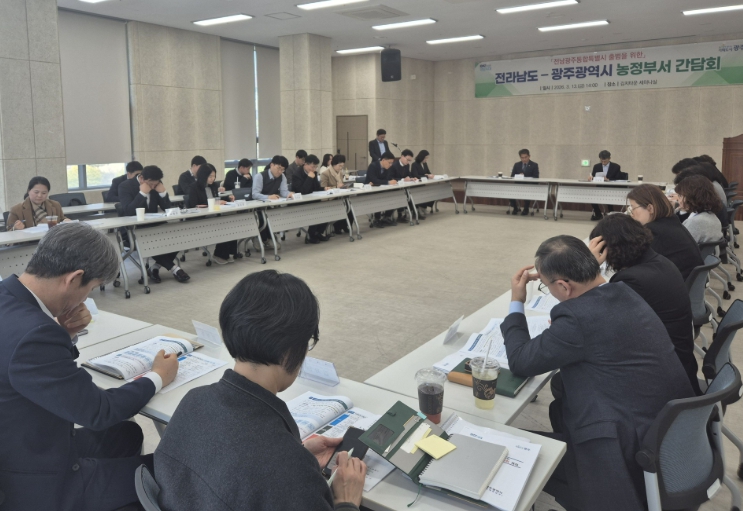 광주광역시는 전라남도와 함께 13일 광주김치타운 발효식품관 세미나실에서 ‘전남–광주 농정부서 간담회’를 열고, 통합 이후의 농업 시너지를 극대화하기 위한 구체적인 협력 과제를 논의했다.
