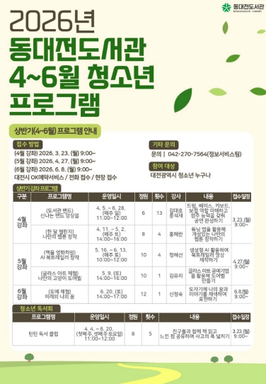 | 동대전도서관 4~6월 청소년 대상 독서․문화 프로그램 운영 |
