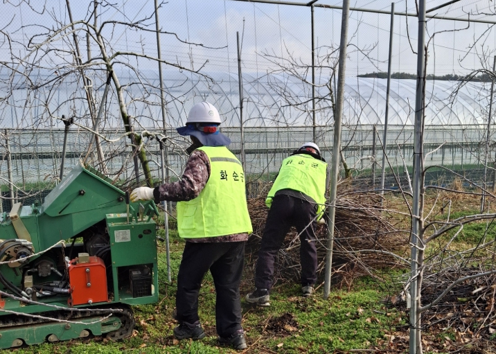 화순군농업기술센터는 지난 1월 영농부산물 파쇄 지원을 신청·접수하고, 2월 12일부터 파쇄지원단을 운영 중이다. 그 결과 3월 11일 기준 31개소 8.8ha 규모의 영농부산물을 파쇄 처리했다.