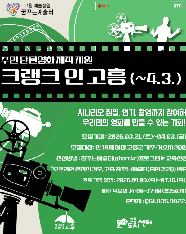 | 주민이 직접 만드는 단편영화 ‘크랭크 인 고흥’ 참여자 모집 |