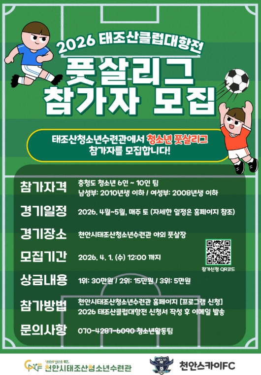 김응일 천안시청소년재단 대표이사 직무대행은 “이번 클럽대항전을 통해 청소년들이 협력과 소통을 바탕으로 팀 스포츠를 즐기며 건강하게 성장하는 계기가 되기를 기대한다”고 밝혔다.