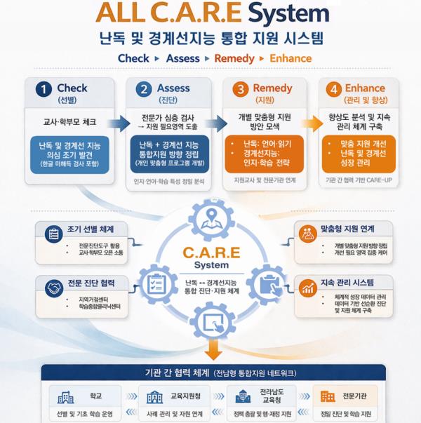 | ALL C.A.R.E(난독 및 경계선지능 통합 지원 시스템) 체계도 |