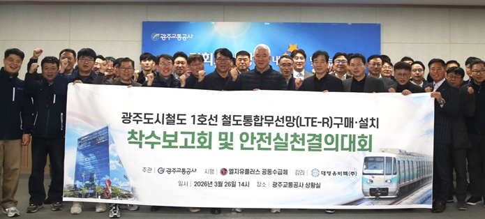 공사는 26일 본사 4층 상황실에서 '광주도시철도 1호선 철도통합무선망(LTE-R) 구매설치' 사업의 착수보고회 및 안전실천 결의대회를 개최했다고 밝혔다.