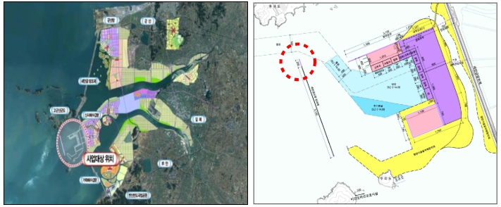 | 새만금항 신항 방파제 (연장) 축조공사 위치도 및 계획평면도 |