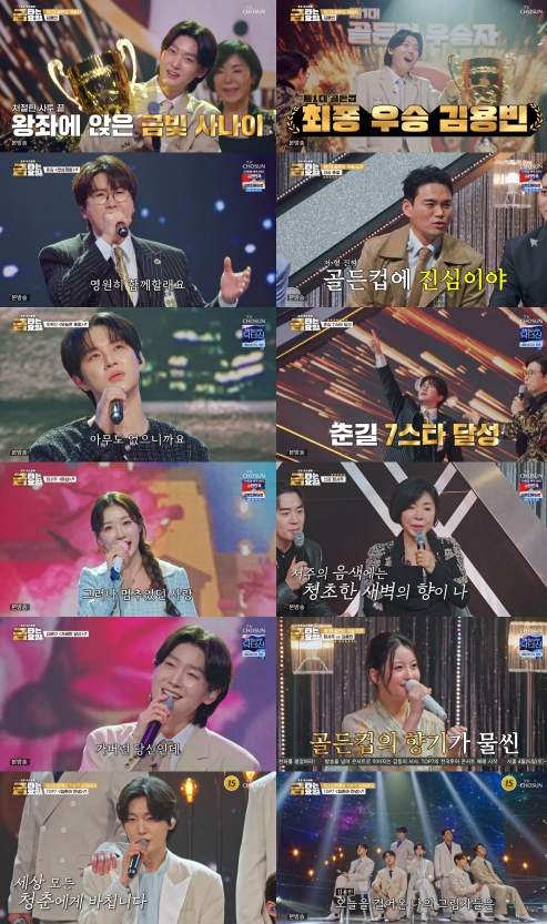 지난 3개월간 팽팽하게 이어진 골든컵 레이스의 결과가 마침내 공개됐다. '금타는 금요일' 제1대 골든컵의 주인공은 7승 5패를 기록한 김용빈이었다. 6승 6패의 춘길과 단 한 경기 차로 희비가 엇갈리며, 마지막까지 손에 땀을 쥐게 한 치열한 경쟁의 결말이 완성됐다. '미스터트롯3'에서 진의 왕관을 쓴 지 1년 만에 다시 우승을 차지한 김용빈은 "생각지도 못했다"라며 겸손한 소감을 전하는 한편, "골든컵을 안고 자겠다"고 덧붙여 웃음을 자아냈다.