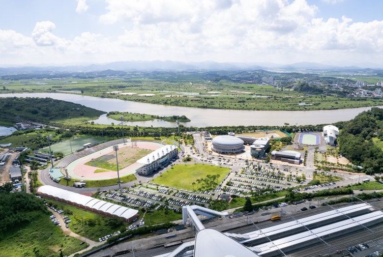 | 국내에서 유일하게 KTX·SRT 나주역과 연결돼 최고의 교통 인프라를 보유한 나주종합스포츠파크. 영산강변에 위치해 빼어난 풍광을 자랑한다. |