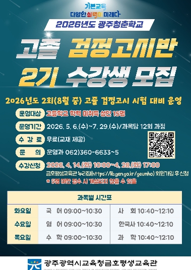 | [포스터] 광주 금호평생교육관, ‘고졸 검정고시반’ 2기 운영 |