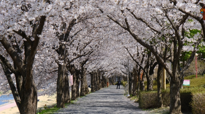 영동읍 용머리공원을 비롯해 황간면 초강천, 양산면 마니산 일원 등 주요 벚꽃 명소에는 흐드러지게 핀 벚꽃과 함께 바람에 흩날리는 꽃잎이 어우러져 장관을 이루고 있다.