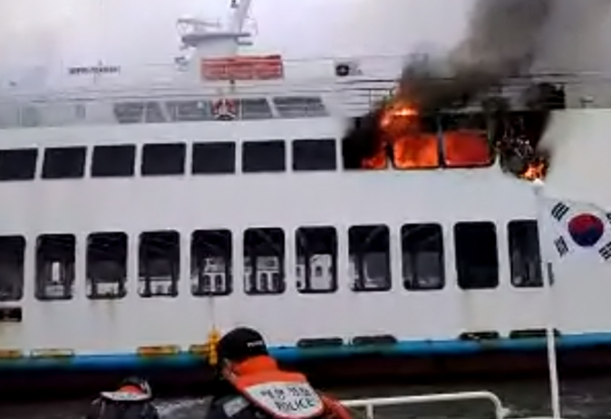 해남 땅끝항 정박 여객선 화재 발생.. 완도해경, 신속 진화 중(1보)