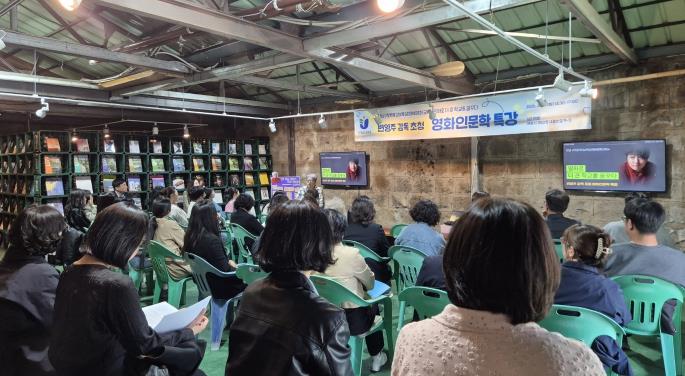 | 21일 목포 남도책방에서 변영주 영화감독 초청 영화인문학 특강이 이뤄지고 있다. |