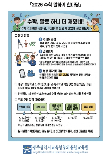 | [포스터] 광주창의융합교육원, ‘2026 수학 말하기 한마당’ 개최 |