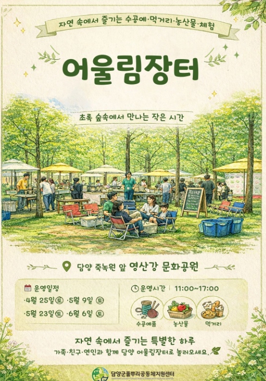 풀뿌리공동체지원센터 관계자는 “어울림장터는 지역 공동체와 소상공인이 함께 성장하는 상생의 토대”라며 “지속적인 운영을 통해 담양형 지역 순환 경제 모델을 구축해 나가겠다”고 말했다.