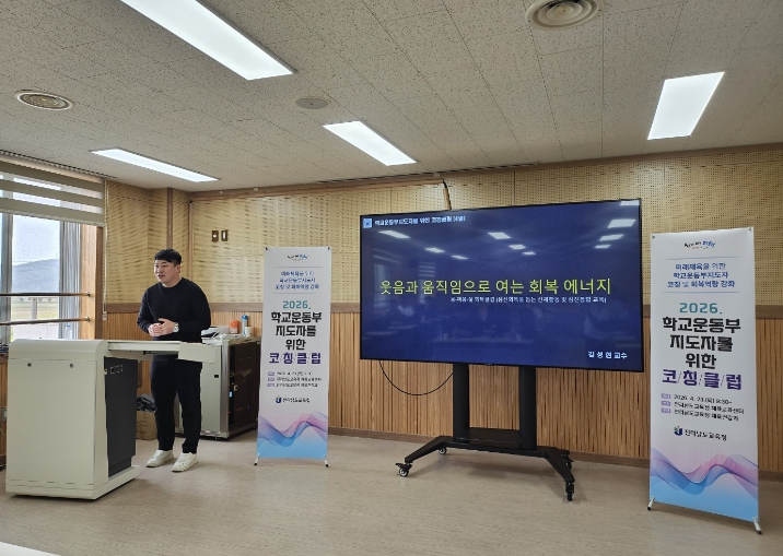 | 23일 무안 전라남도교육청 체육교육센터에서 ‘2026. 학교운동부지도자를 위한 코칭클럽’이 진행되고 있다. |