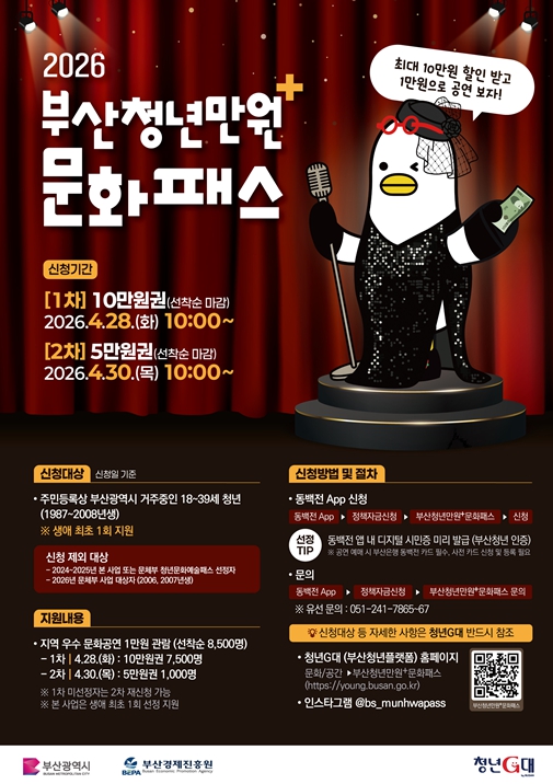 | 부산시, '청년만원+문화패스' 28일부터 선착순 접수 |