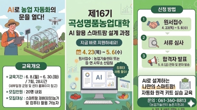 | 제16기 곡성명품농업대학 AI 활용 스마트팜 설계 과정 모집 안내문 |