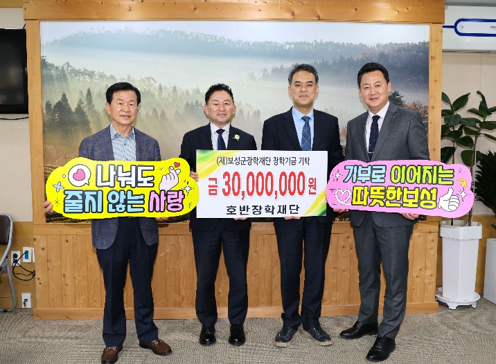보성군장학재단 문찬오 이사장은 “매년 아낌없는 지원을 보내주시는 호반장학재단에 깊은 존경과 감사의 마음을 전한다”라며 “기탁해 주신 장학금이 보성의 미래를 밝힐 인재들에게 든든한 발판이 될 수 있도록 소중히 사용하겠다”라고 말했다.