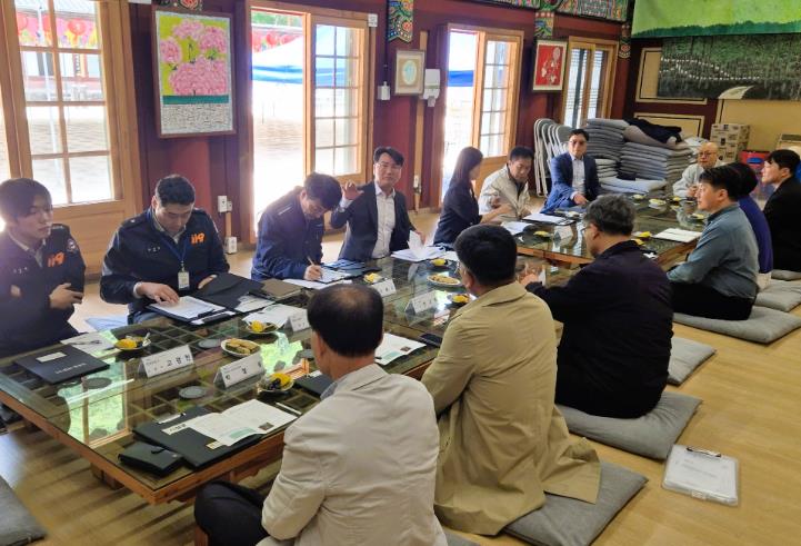 | 지난 24일 장성 백양사 합동 안전점검 현장. 장성군 제공 |