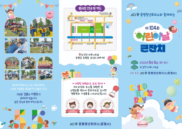 증평청년회의소(회장 최현우)가 주관하는 이번 행사는 공연과 체험, 먹거리, 안전교육을 아우르는 복합 놀이공간으로 꾸려진다.