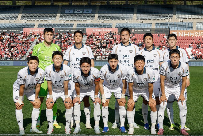 | 4월 25일 부천 원정경기에서 김천상무 선발 선수단이 사진을 찍고 있다 |
