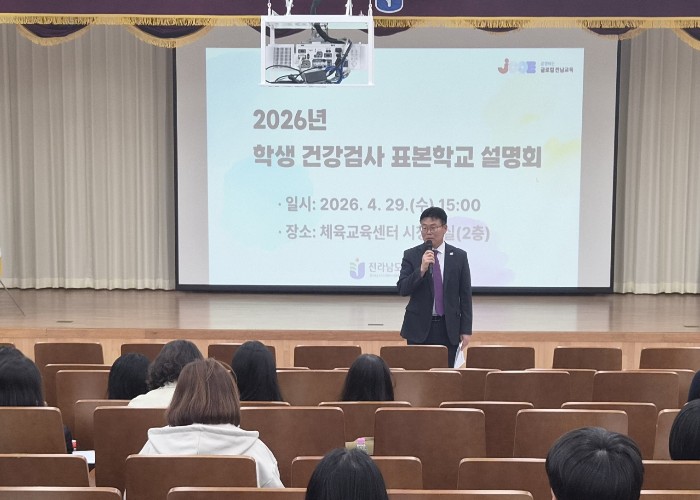 | 29일 전라남도교육청체육교육센터에서 ‘2026년 학생 건강검사 표본학교 설명회’가 진행되고 있다. |