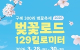 [제일경제신문]전남 구례군이 전국 최장 129㎞ 벚꽃길을 앞세운 ‘2026 구례300리 벚꽃축제’를 오는 3월 28일부터 30일까지 3일간 서시천체육공원과 문척면 행복센터 일원에서 개최한다. 구례군은 구례 벚꽃길의 매력을 널리 알리고 지역 봄 관광을 활성화하기 위해 2023년부터 구례300리 벚꽃축제를 열고 있다. 올해는 공연과 체험, 참여형 프로그램을 늘려 한층 풍성한 내용으로 관람객을 맞는다. 서시천체육공원에서는 아름다운 서시천 벚꽃을 가족들과 함께 즐길 수 있는 ‘다른 그림 찾기’, ‘스탬프 투어’ 등 다양한 체험행사가 2...