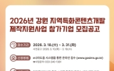 경제 김정란 기자2026. 03.20[제일경제신문] 강원문화재단에서는 강원지역 우수 콘텐츠 발굴 및 지역 콘텐츠 기업의 성장을 도모하기 위한 공모사업을 진행한다. 31일까지 접수하는 '지역특화콘텐츠개발 제작지원사업'은 강원 지역의 문화, 관광, 역사, 전통, 인물, 생태자원 등 지역 특화 소재를 활용한 콘텐츠의 개발과 사업화를 지원한다. 강원특별자치도 소재 콘텐츠 기업을 대상으로 하며, 지원 분야는 콘텐츠 산업 전분야이다. 재단은 공모를 통해 3개 과제 내외를 선정할 예정이며, 과제당 최대 2억원을 지원하고 선정 과제의 완성도와 사업성을 높이기 위해 맞춤...