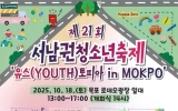 [제일경제신문]제21회 서남권청소년축제가 ‘유스(YOUTH)토피아 in MOKPO’를 주제로 오는 10월 18일(토) 오후 1시부터 5시까지 목포 로데오광장 일대에서 열린다. 이번 행사는 목포시가 주최, 서남권청소년축제추진위원회가 주관, 전라남도교육청이 후원하며, 전남 서남권 청소년과 청소년지도자, 시민 등 1,000여 명이 참여할 예정이다. 축제는 식전공연과 ▲경연프로그램(StageON) ▲체험부스운영(PlayON) ▲참여형 프로그램(7종) 등 다채로운 내용으로 진행된다. 식전공연에서는 목포백련초등학교 6학년 임사랑 학생의 ...