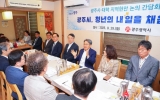전국 박철홍 기자2025. 09.29[제일경제신문]광주시와 광주지역 대학 총장들이 대학 발전 방향과 청년정책 성과를 공유하고 앞으로 협력방안 등을 논의했다. 광주광역시는 29일 서구 치평동 한 음식점에서 광주지역 12개 대학 총장들과 ‘오찬 간담회’를 열고, 지역 대학 발전 방향과 협력 방안에 대해 논의했다. 또 광주만의 청년정책을 공유하고 국가AI컴퓨팅센터 유치에 대해 힘을 모으기로 했다. 이날 간담회에는 강기정 시장을 비롯해 전남대, 조선대, 호남대, 광주대, 남부대, 광주교대, 광주여대, 송원대, 광주과학기술원, 광주보건대, 동강대, 기독간호대 총장이 참...