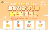사회이슈 김정란 기자2025. 09.29[제일경제신문] 충남도는 천안·공주·보령·금산·서천·청양·예산 7개 시군과 10월 한 달간 ‘추석맞이 고향사랑 덤앤덤 이벤트’를 실시한다고 29일 밝혔다. 고향사랑기부제의 활성화를 위해 마련한 이번 이벤트는 도와 7개 시군에 10만원 이상 기부 시 기존 10만원 세액공제와 3만원 상당 답례품 외에 특정 답례품 선택 시 덤으로 추가 답례품을 증정한다. 이벤트 참여 품목은 도 42개, 천안시 4개, 공주시 2개, 보령시 2개, 금산군 3개, 서천군 6개, 청양군 1개, 예산군 1개 등 총 63개이다. 도는 42개 인기 ...