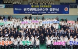 전국 박철홍 기자2025. 09.26[제일경제신문]광주광역시체육회(회장 전갑수)가 26일 오후 2시 빛고을체육관에서 ‘제106회 전국체육대회 광주선수단 결단식’을 열어 대회 필승을 위한 각오를 다졌다고 밝혔다. 이날 행사에는 전갑수 체육회장, 김영문 광주시 문화경제부시장, 서용규 광주시의회 부의장, 이정선 광주시교육감을 비롯한 종목단체 회장, 임원, 육성학교장 등 관계자 400여 명이 참석해 광주시 대표선수단의 선전을 기원하며 격려했다. 행사는 사전공연, 전국체전 참가계획 보고, 대표선수 훈련영상 시청, 선수단기 수여, 선수대표 선서, 응원 메시지 및 격려금 전달...