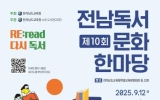 전국 박철홍 기자2025. 09.10[제일경제신문]전라남도교육청은 9월 12일부터 27일까지 3주간, 전남 지역 공공도서관과 교육문화회관, 평생교육관 등 22개 기관에서 ‘제10회 전남독서문화한마당’을 개최한다. ‘RE: read, 다시 독서’를 주제로 한 이번 한마당 행사에는 온 가족이 즐길 수 있는 공연과 인문학 강연, 재미난 체험 프로그램이 풍성하다. 축제의 문은 9월 12일 목포도서관 평화광장에서 펼쳐지는 김창완 밴드 공연으로 힘차게 열린다. 다음 날인 13일에는 어린이 버블쇼와 샌드아트 체험이 마련돼 가족 단위 관객의 발길을 붙든다. 고흥평생교...