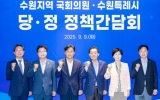 전국 박철홍 기자2025. 09.09[제일경제신문]이재준 수원시장은 9일 오전 수원컨벤션센터에서 수원 지역 국회의원들과 정책간담회를 열고, “수원 대전환, 나아가 대한민국 대전환을 위해 함께 노력하자”고 밝혔다. 이날 간담회에는 이재준 시장과 백혜련(수원시을)·김영진(수원시병)·김승원(수원시갑)·염태영(수원시무)·김준혁(수원시정) 의원, 김현수 제1부시장, 현근택 제2부시장, 수원시의회 김정렬 부의장, 김동은 더불어민주당 교섭단체 대표 의원 등이 참석했다. 이재준 시장은 이날 간담회에서 ▲군공항 주변 지역 고도제한 완화 ▲시민 체감 숙원사업(출산지원금·생리...