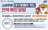 전국 박철홍 기자2025. 09.07[제일경제신문]대구광역시는 대구로페이 카드 결제 시 민생회복 소비쿠폰 잔액 확인이 어려워 시민들이 겪는 불편을 해소하고자, iM뱅크와 함께 9월 8일부터 11월 30일까지 본인등록을 마친 대구로페이 카드의 소비쿠폰 잔액을 카카오톡 또는 문자메시지로 확인할 수 있는 알림 서비스를 시작한다. ① 본인등록을 마친 기명화 대구로페이 카드 소비쿠폰 잔액 확인 기명화된 대구로페이 카드는 기존 ‘iM샵’ 앱 카드 등록이나 ARS 조회를 통해 소비쿠폰 잔액 확인이 가능했으나, 스마트폰 사용이 어려운 디지털 취약계층은 카드 사용 후 잔액 확인에 ...