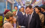 정치 김정란 기자2025. 09.05[제일경제신문]이재명 대통령은 'K-바이오, 혁신에 속도를 더하다' 토론회 개최 이후 인천 미추홀구에 위치한 용현시장을 깜짝 방문했다. 상인들과 주민들은 놀란 와중에도 박수와 웃음으로 이재명 대통령을 반겼고, 이 대통령은 축산물 가게에서 고기 가격 동향을 듣는 등 용현시장 곳곳을 살펴봤다. 한 상인이 영업은 어떤지 묻는 질문에 "대통령님 고생 많으시죠"라고 답하자, 이재명 대통령은 "여러분이 더 고생 많으시죠"라며 격려했다. 이재명 대통령은 분식집에 들러 삶은 햇고구마, 순대, 떡볶이를 구매해 동행한 이들과 나눠 먹었다. 이 ...