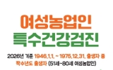 전국 박철홍 기자2026. 03.13[제일경제신문]옹진군은 올해 처음으로 여성농업인의 건강권 보호를 위한'여성농업인 특수건강검진사업'을 본격 시행한다고 밝혔다. 이번 사업은 농작업으로 인해 근골격계 질환 등 직업성 질환에 취약한 여성농업인을 대상으로 건강검진 및 예방 상담을 지원하는 사업으로 여성농업인의 삶의 질 향상과 안정적인 영농 활동을 지원하기 위해 추진된다. 지원 대상은 옹진군에 거주하며 농업경영체에 등록된 짝수년도 출생의 51세부터 80세까지 여성농업인으로, 올해는 총 60명을 대상으로 실시되며, 검진 비용은 1인당 22만 원이며, 이 중 19만8천 원...