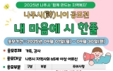 전국 박철홍 기자2025. 08.28[제일경제신문]전라남도 나주시지역사회보장협의체 노인 실무분과는 관내 만 65세 이상 어르신을 대상으로 ‘2025년 나주시(詩)니어 제1회 내 마음에 시 한 줄 공모전’을 오는 9월 1일부터 9월 30일까지 개최한다. 이번 공모전은 나주시 거주 어르신이라면 누구나 편안하게 자신의 이야기를 담아 참여할 수 있도록 마련된 특화사업이다. 평소 문화·예술 활동에 익숙하지 않은 분들도 부담 없이 시 창작의 즐거움을 느끼고 이를 통해 삶의 순간과 감정을 글로 표현하며 지역사회에 따뜻한 울림을 전하는 것을 목표로 한다. 응모 주제는 ‘가족’ ...