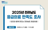전국 박철홍 기자2025. 08.24[제일경제신문]전라남도는 도민의 목소리를 반영해 응급실을 더 안전하고 따뜻하게 관리토록 하기 위해 9월 5일까지 지역 응급의료기관 38개소 응급실 이용객을 대상으로 2025년 응급의료 만족도 조사를 한다고 밝혔다. 응급의료 만족도 조사 전남도 차원에서 처음 하는 것으로 응급실 이용 실태와 문제점 등에 대한 전반적인 사항을 조사해 2026년 지역응급의료시행계획에 반영, 응급의료 서비스를 높이는데 활용할 예정이다. 조사 대상은 응급의료기관 38개소를 이용하는 20세 이상 80세 미만 도민 1천500여 명이다. 조사 항목은 ▲응급의...
