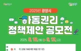 전국 박철홍 기자2025. 08.19[제일경제신문]광양시는 8월 18일부터 9월 12일까지 '2025년 아동권리 정책제안 공모전'을 개최한다고 밝혔다. 이번 공모전은 아동이 자신의 권리에 대해 고민하고, 일상 속 문제를 바탕으로 정책을 제안함으로써 지역사회의 주체로 참여할 기회를 제공하고자 마련됐다. 공모 주제는 아동의 권리를 보장할 수 있는 정책 전반에 대한 자율 주제이며, 1인 1건 제출이 가능하다. 아동은 유엔아동권리협약에서 보장하는 4대 권리(생존권, 보호권, 발달권, 참여권)를 바탕으로 자유롭게 아이디어를 제안할 수 있다. 시는 접수된 제안 중 총 ...