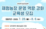 전국 박철홍 기자2025. 07.24[제일경제신문]광주광역시 농업기술센터는 체험농장 운영자의 기획력과 실행력을 높이고 농촌융복합산업을 활성화하기 위해 ‘2025년 체험농장 운영 역량강화 교육’ 참가자를 모집한다. 이번 교육은 8월 11일부터 27일까지 총 6회에 걸쳐 진행되며 ▲농촌관광과 체험서비스의 이해 ▲체험농장 운영 관련 법규 ▲치유농장 자원 분석 및 프로그램 사례 ▲비대면 체험키트 상품 개발 ▲우수 농장 현장 견학 등으로 구성된다. 교육과정은 실제 운영사례와 실무기법 중심으로 편성, 참여농가의 콘텐츠 기획력과 현장 적용능력을 함께 높일 수 있도록 설계됐다....