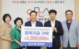 스포츠 김정란 기자2025. 07.10[제일경제신문]광주 동구는 최근 지산1동 동백회로부터 인재 육성에 써달라며 장학금 1백만 원을 기탁받았다고 밝혔다. ‘동구에서 백세까지’라는 뜻을 담고 있는 동백회는 윤승오 지산1동 주민자치회장을 비롯해 주민과 관내 동 거주 직원 등으로 구성된 모임으로, 지역사회 발전과 주민 간 소통을 도모하고 있다. 이번 장학금은 회원들이 십시일반 회비를 모아 마련한 것으로, 동구 인재육성장학회에 전달됐다. 장택용 회장은 “작은 정성이지만 우리 지역 학생들의 밝은 미래에 보탬이 되길 바란다”고 말했다. 임택 동구청장은 “지역을 사랑하는...