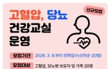 전국 박철홍 기자2026. 03.06[제일경제신문]영광군보건소는 만성질환 예방과 군민 건강수명 연장을 위해'2026년 상반기 고혈압·당뇨병 건강교실'참여자 20명을 선착순 모집한다고 밝혔다. 고혈압과 당뇨병은 자각증상이 적어 관리가 소홀해지기 쉬운 대표적인 만성질환으로, 방치할 경우 심뇌혈관질환 등 중증 합병증으로 이어질 수 있어 꾸준한 관리가 무엇보다 중요하다. 이번 건강교실은 3월 24일부터 주 2회(화, 목) 총 8회 과정으로 운영되며, ▲혈압·혈당 기초검사 ▲저염·저당 식생활 실습 ▲맞춤형 운동요법 ▲복약관리 지도 ▲스트레스 관리 프로그램 ▲소근육 활...