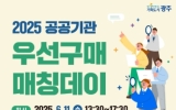전국 박철홍 기자2025. 06.10[제일경제신문]광주광역시는 광주사회적경제지원센터와 함께 11일 시청 시민홀에서 ‘2025 공공기관-사회적경제기업 우선구매 매칭데이’를 개최한다. 이번 행사는 사회적경제기업의 공공시장 진입을 돕고, 공공기관의 사회적가치 실현을 장려하기 위해 마련됐다. 광주시 출자·출연기관, 나주혁신도시내 공공혁신기관 및 기업 등 22개 기관, 광주지역 사회적경제기업 60여곳이 참여한다. 매칭데이 현장에서는 공공기관과 사회적경제기업 간 1대 1 맞춤형 구매상담이 진행되며, 사회적경제제품 우선구매 제도에 대한 교육도 병행해 제도에 대한 이해를 높인...