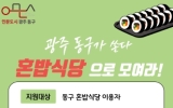 전국 박철홍 기자2025. 06.04[제일경제신문]광주 동구는 관내 혼밥식당 32개소 식당 이용자 중 선착순 100명에게 1인당 최대 1만 원의 체험비를 지원하는 이벤트를 5일부터 7월4일까지 진행한다고 밝혔다. 이번 이벤트는 동구 혼밥식당 이용 후기를 SNS 계정에 올려 혼밥식당을 적극 알리고, 지원비 신청서를 작성하면 된다. 지원비 신청은 7월 13일까지다. 동구는 광주 5개 자치구 중 1인 가구 비율(43.6%)이 가장 높은 데다, ‘혼밥족(혼자 밥을 먹는 사람들)’이 급증함에 따라 혼자서도 편안하고 건강한 한 끼를 먹을 수 있는 동구 혼밥식당 32개소를...