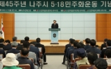 전국 박철홍 기자2025. 05.19[제일경제신문]나주시는 5월 19일 오전 10시, 나주시민회관 2층 강당에서 ‘제45주년 5‧18 민주화운동 기념식’을 개최하고 오월 정신의 역사적 의미를 되새기는 시간을 가졌다. 이날 기념식은 ‘아! 오월, 다시 만난 오월’을 슬로건으로 윤병태 나주시장과 신정훈 국회의원, 이재남 시의장, 김석기 광주지방보훈청장을 비롯해 5‧18 유공자와 유족, 시민 등 200여 명이 참석했다. 행사는 식전 추모공연을 시작으로 국민의례, 기념사, 추념사, ‘임을 위한 행진곡’ 제창, 헌화와 분향순으로 이어졌다. 이날 추모공연은 만월 놀이패 살풀...