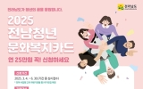 전국 박철홍 기자2025. 05.13[제일경제신문]여수시는 전남청년 문화복지카드 지원사업 대상자를 오는 6월 30일까지 상시 모집 중이라고 밝혔다. ‘전남청년 문화복지카드 지원사업’은 지역 청년에게 연 25만 원의 문화복지비를 지원하는 사업으로, 청년의 문화 향유 기회를 넓히기 위해 지난 2022년부터 시행됐다. 지원 대상은 2023년 3월 4일 이전부터 전남 도내에 2년 이상 주소를 두고 있는 19~28세 청년(1997년~2006년 출생자)이며, 자격요건을 충족하는 청년은 매년 신청해야 한다. 단, 복지포인트(카드)를 지급받는 공공기관 근무자, 학교 밖 청소년...