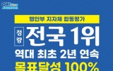 전국 박철홍 기자2025. 05.08[제일경제신문]전라남도는 행정안전부의 2025년(2024년 실적) 지자체 합동평가 결과 정량지표에서 2년 연속 100%로 1위를 달성했다고 밝혔다. 이는 지난해에 이어 전국 17개 시·도 가운데 유일하게 정량지표 100% 달성한 것이다. 2년 연속 100%는 앞으로도 깨지기 어려울 것이라는 분석이다. 자자체 합동평가는 행정안전부를 비롯한 중앙행정기관이 공동으로 전국 17개 시·도에 대해 국가위임사무와 국고보조사업, 국가 주요 시책 추진성과 등을 대상으로 이뤄지는 지방자치단체 종합평가다. 올해는 정량지표(목표달성도 평가) 9...