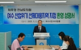 전국 박철홍 기자2025. 05.02[제일경제신문]전남도의회 안전건설소방위원회 최무경 의원(더불어민주당, 여수4)은 5월 2일 여수시청 브리핑룸에서 열린 성명서 발표에서, 산업통상자원부가 여수시를 ‘산업위기 선제대응지역’으로 공식 지정한 것에 대해 “여수시민과 전남도민의 오랜 염원이 이뤄진 뜻깊은 결실”이라며 진심 어린 환영의 뜻을 밝혔다. 이번 지정에 따라 여수시는 2025년 5월 1일부터 2027년 4월 30일까지 2년간 산업위기 선제대응지역으로 지정되며, 정부로부터 긴급경영안정자금, 지방투자촉진보조금, 정책금융 우대, 고용안정 지원 등 종합적인 지원을 받게 된...